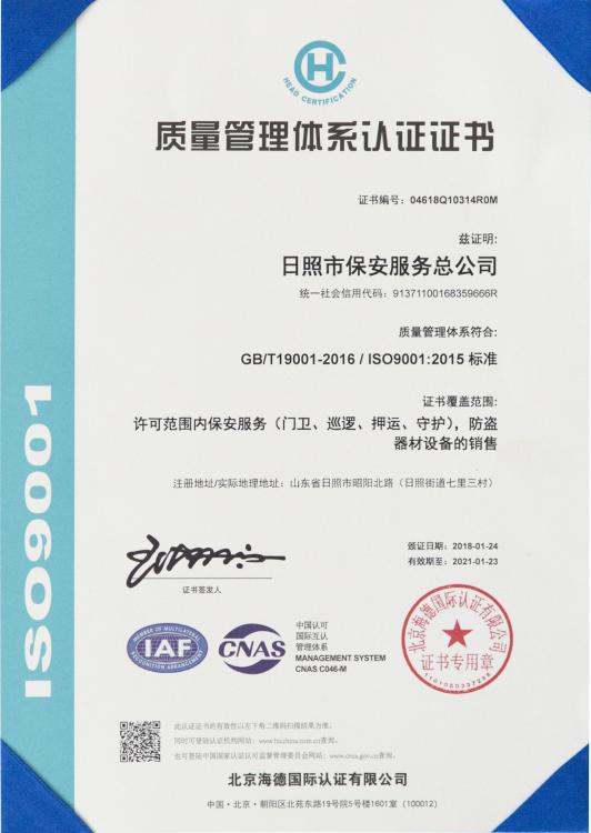 ISO9001質(zhì)量管理體系認證--2018年