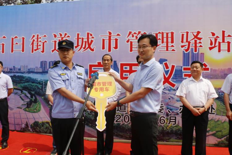 “城市管理驛站·雷鋒站”是石臼街道為進一步規(guī)范提升城市精細化管理工作水平,組織第三方單位及廣大志愿者參與城市管理服務而建立的,日照保安發(fā)展集團人力防范分公司向站點派駐了30名“城市管理員”,協(xié)助石臼街道開展城市管理服務。啟動儀式上石臼街道辦事處趙主任向日照保安發(fā)展集團人力防范分公司大隊長李濤同志授予了“城市管理專用車金鑰匙”,城市管理員代表現(xiàn)場做了表態(tài)發(fā)言,表示將堅持文明執(zhí)勤,嚴守紀律,牢固樹立服務群眾的工作理念,抓住工作重點,強化工作落實,提升服務質(zhì)量,以實際行動為石臼街道的城市精細化管理工作交上一份滿意的答卷。