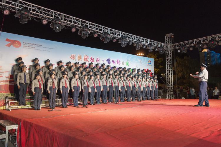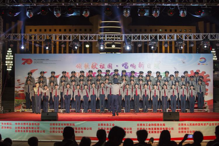 為熱烈慶祝新中國成立70周年、日照市建市30周年,8月19日至20日晚,由市委宣傳部、市文化和旅游局、市總工會、市工業(yè)和信息化局、市國資委主辦的“頌歌獻祖國 唱響新日照”大型群眾合唱藝術節(jié)——企業(yè)專場展演在市政府廣場拉開帷幕。此次活動為期兩天,共有9家單位選送19支合唱曲目參加展演,日照保安發(fā)展集團“逐夢合唱團”于20日晚獻唱了《日照保安之歌》《歌唱祖國》兩首歌曲。
