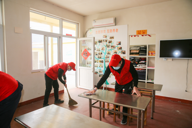 志愿者們將大米、面粉、雞、滅火器等慰問(wèn)品送進(jìn)愛(ài)心食堂,并通過(guò)工作人員詳細(xì)了解老人的身體健康和疫情防控狀況。接著,志愿者們熱火朝天地忙碌起來(lái),把食堂、餐廳、超市打掃得干干凈凈。