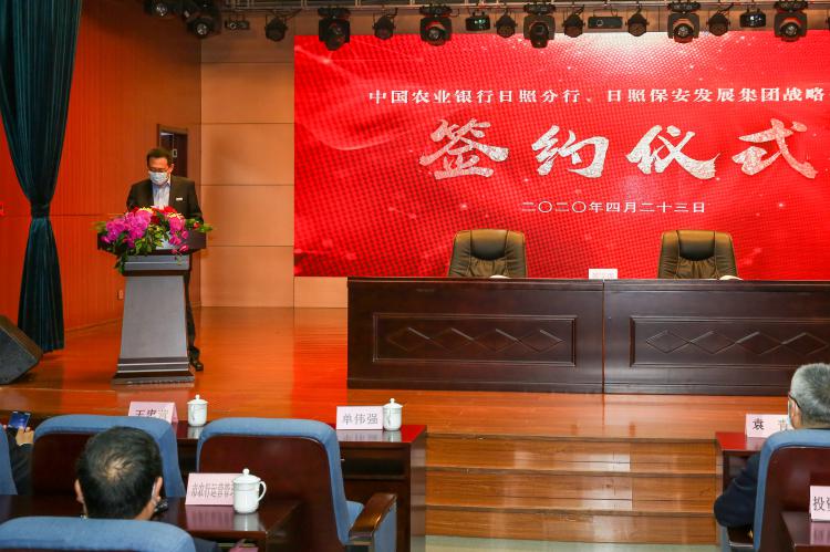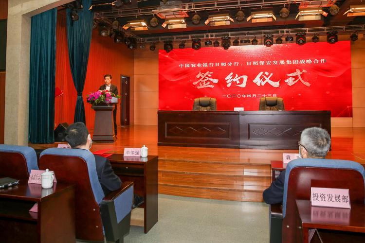 儀式活動上,農(nóng)行日照分行黨委書記、行長單偉強,日照保安發(fā)展集團黨委書記、董事長尹相光,分別致辭,祝賀成功合作簽約。