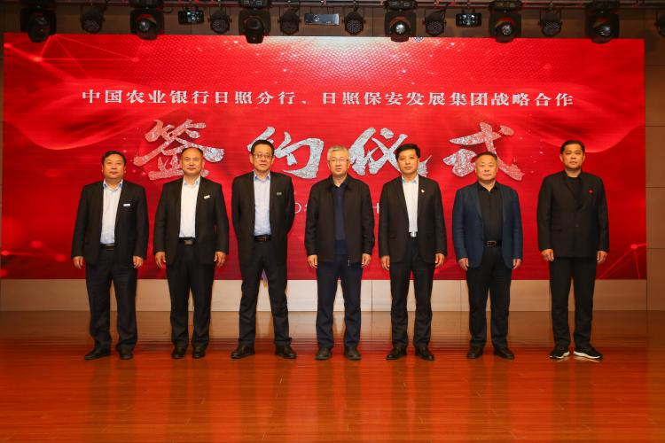 (市國資委、農(nóng)行日照分行和日照保安發(fā)展集團參加儀式領(lǐng)導合影留念)