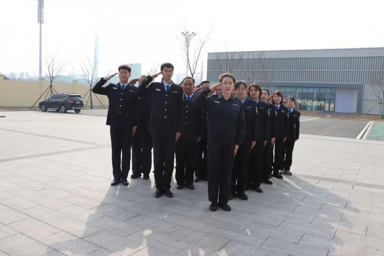 考核開始前,先對全體員工進行了隊容風紀檢查,隨后由指揮員進行隊列指揮,對立正、稍息、敬禮、跨立、停止間轉(zhuǎn)法、齊步行進與立定等科目進行考核。