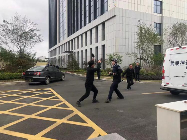 首先,按照演練預(yù)案進(jìn)行演練前動員,明確職責(zé)任務(wù),熟悉預(yù)案的相關(guān)內(nèi)容,提醒在演練過程中避免出現(xiàn)人身安全事故。 隨著“演練開始”指令發(fā)出,演練開始后,犯罪嫌疑人意欲搶劫押運(yùn)車內(nèi)涉案財物,押運(yùn)員與其展開了周旋并及時報告指揮中心,指揮中心值班人員接到報告后立即上報值班領(lǐng)導(dǎo)和應(yīng)急小組,同時觸發(fā)110報警設(shè)備。此時,警衛(wèi)人員、押運(yùn)員、應(yīng)急小組與歹徒進(jìn)行搏斗,并成功制服歹徒,隨后110警務(wù)人員趕到現(xiàn)場將歹徒帶走。