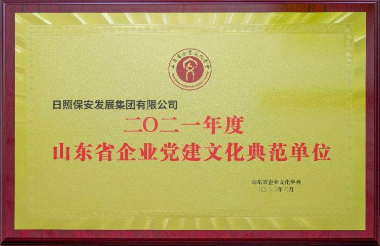 近日,日照保安發(fā)展集團受邀參加2022年山東省企業(yè)文化發(fā)展大會暨山東省企業(yè)文化建設(shè)“十四五”發(fā)展指導(dǎo)意見發(fā)布會,被授予“2021年度山東省企業(yè)黨建文化典范單位”榮譽稱號。