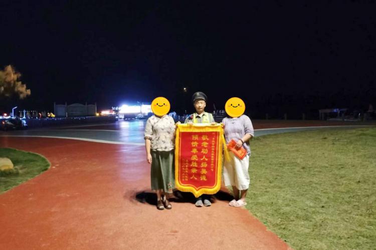 8月7日晚上,市民孟女士將一面寫有“敬老助人揚(yáng)美德 傾情奉愛勝親人”的錦旗贈(zèng)給日照保安發(fā)展集團(tuán)人力防范分公司萬平口中隊(duì),對日照保安幫助尋找走散老人表示感謝。