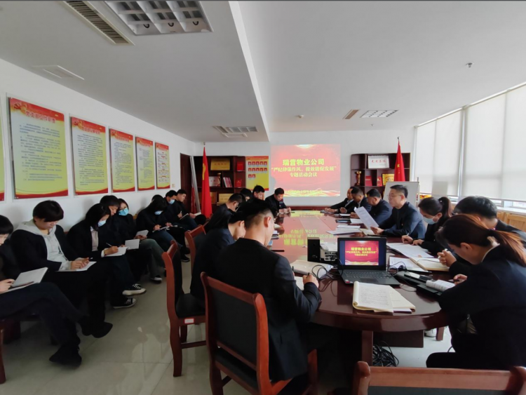 瑞營物業(yè)公司召開“嚴(yán)紀(jì)律強(qiáng)作風(fēng)、提效能促發(fā)展”專題活動(dòng)動(dòng)員會(huì)議,傳達(dá)學(xué)習(xí)集團(tuán)黨委“嚴(yán)紀(jì)律強(qiáng)作風(fēng)、提效能促發(fā)展”專題活動(dòng)動(dòng)員會(huì)議精神,并對實(shí)施方案中指導(dǎo)思想、工作重點(diǎn)和要求再作強(qiáng)調(diào)。