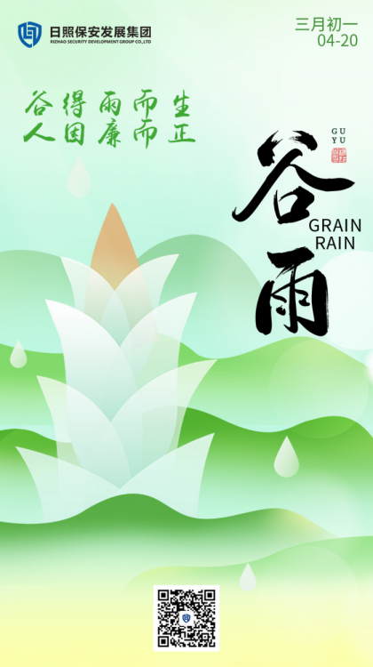 谷雨,是二十四節(jié)氣之第六個(gè)節(jié)氣,春季的最后一個(gè)節(jié)氣。谷雨取自“雨生百谷”之意,這時(shí)春夏交接,田中秧苗初插、作物新種,最需要雨水的滋潤,意味著新的生機(jī)與希望。集團(tuán)廣大黨員干部職工要趁谷雨節(jié)氣,緊鑼密“谷”學(xué)習(xí)提高,在春天播下“智慧、實(shí)干、廉潔”的種子,向陽而生,向廉而行,修養(yǎng)浩然正氣,永葆清廉本色。